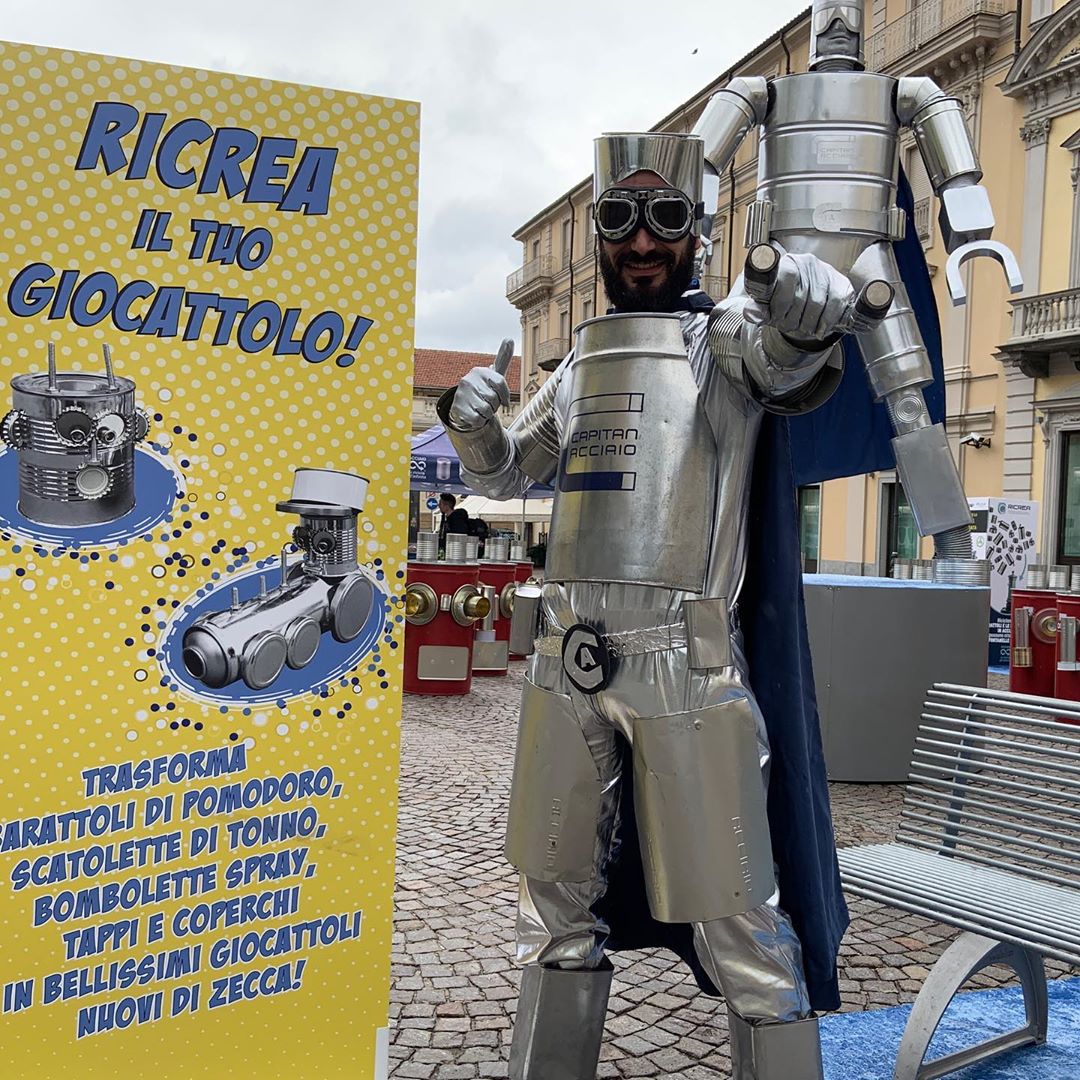 L’iniziativa, che vede Capitan Acciaio impegnato in un viaggio attraverso la penisola, è organizzata da RICREA, il Consorzio Nazionale senza scopo di lucro per il Riciclo e il Recupero degli Imballaggi in Acciaio, uno dei sei consorzi di filiera che compongono il sistema CONAI, in collaborazione con COSMARI, la società che gestisce la raccolta differenziata nel Comune di Macerata.